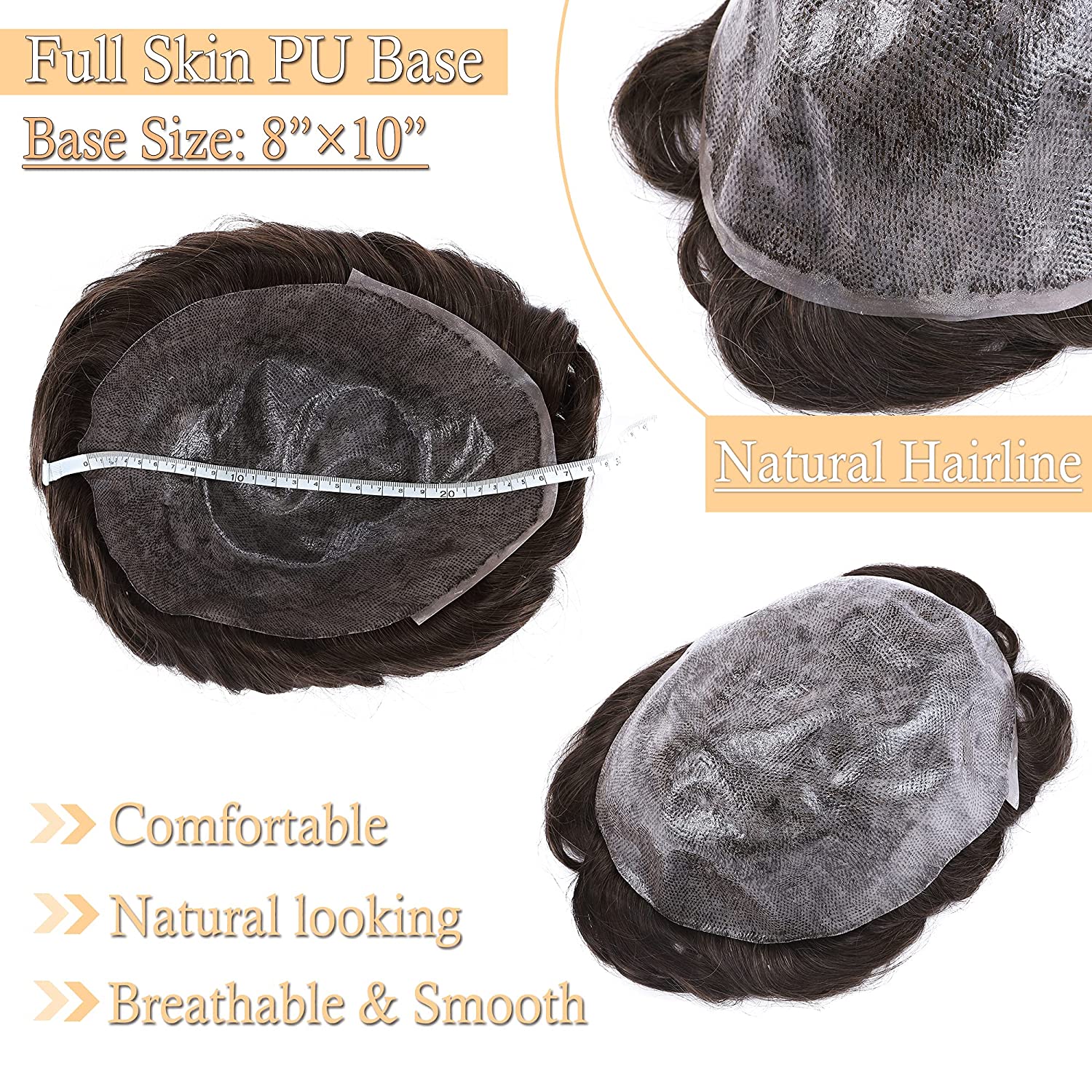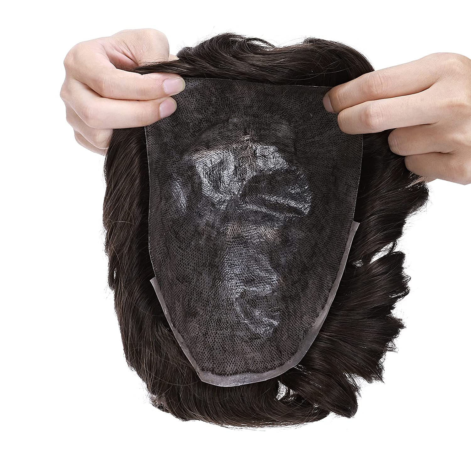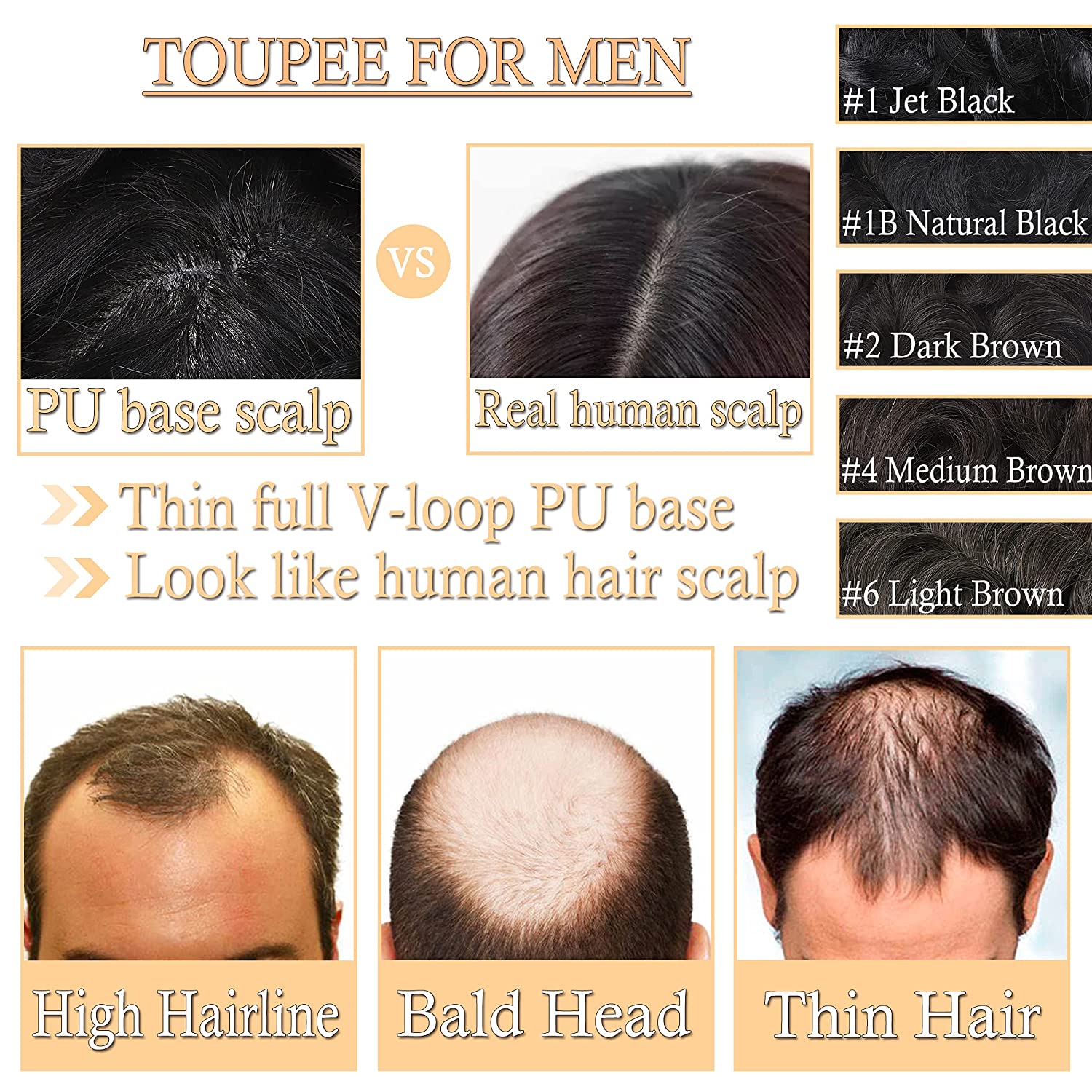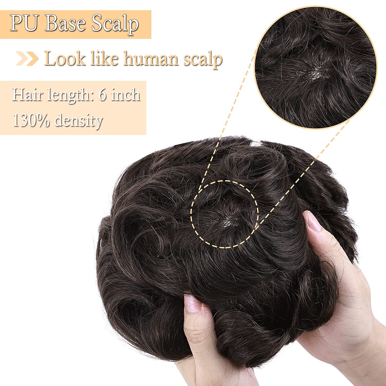 N.L.W. Curly PU Thin Skin System Mens Toupee Human Hair Topper Hairpiece for Men 8×10″ Indian Virgin Human Hair 110% Density 6″ Long Curly Men’s Hairpiece Replacement Wig
