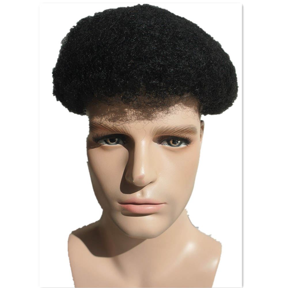 N.L.W. Afro Curl BIO Hairpieces PU Thin Skin and Lace Front Toupee Human Hair Replacement System For Men